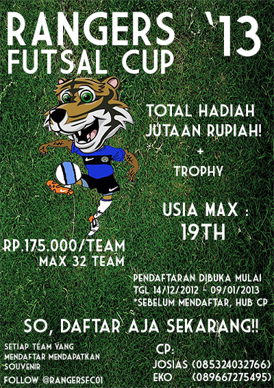 Rangers FC adalah sebuah klub futsal yg berasaskan kekeluargaan yang Latihan Rutin @babakanfutsal Jumat 17.00 - 18.00